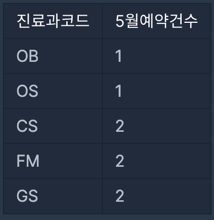 다음은 종합병원의 진료 예약정보를 담은 APPOINTMENT 테이블 입니다.