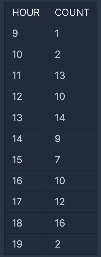 DATE_FORMAT(DATETIME, '%H') as HOUR,