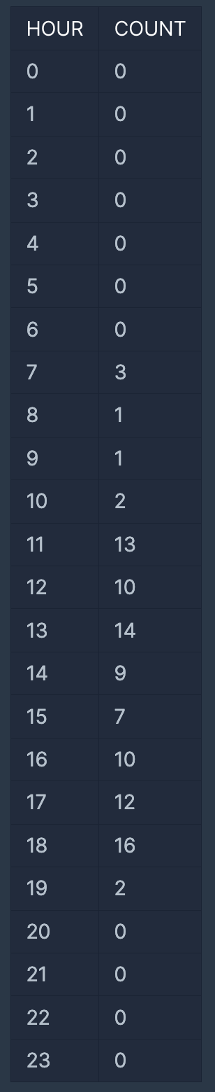 SELECT 0 as hour