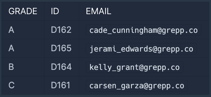 GRADE가 존재하는 개발자의 GRADE, ID, EMAIL을 조회하는 SQL 문을 작성해 주세요.