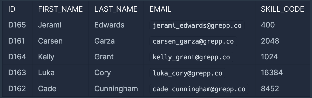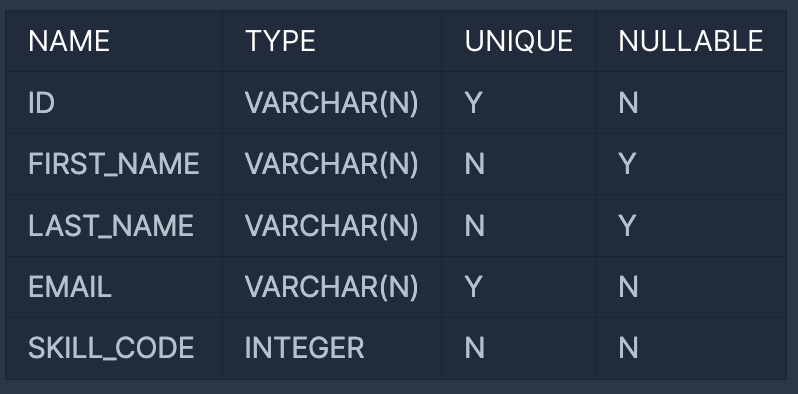 예를 들어 SKILLCODES 테이블이 다음과 같고,