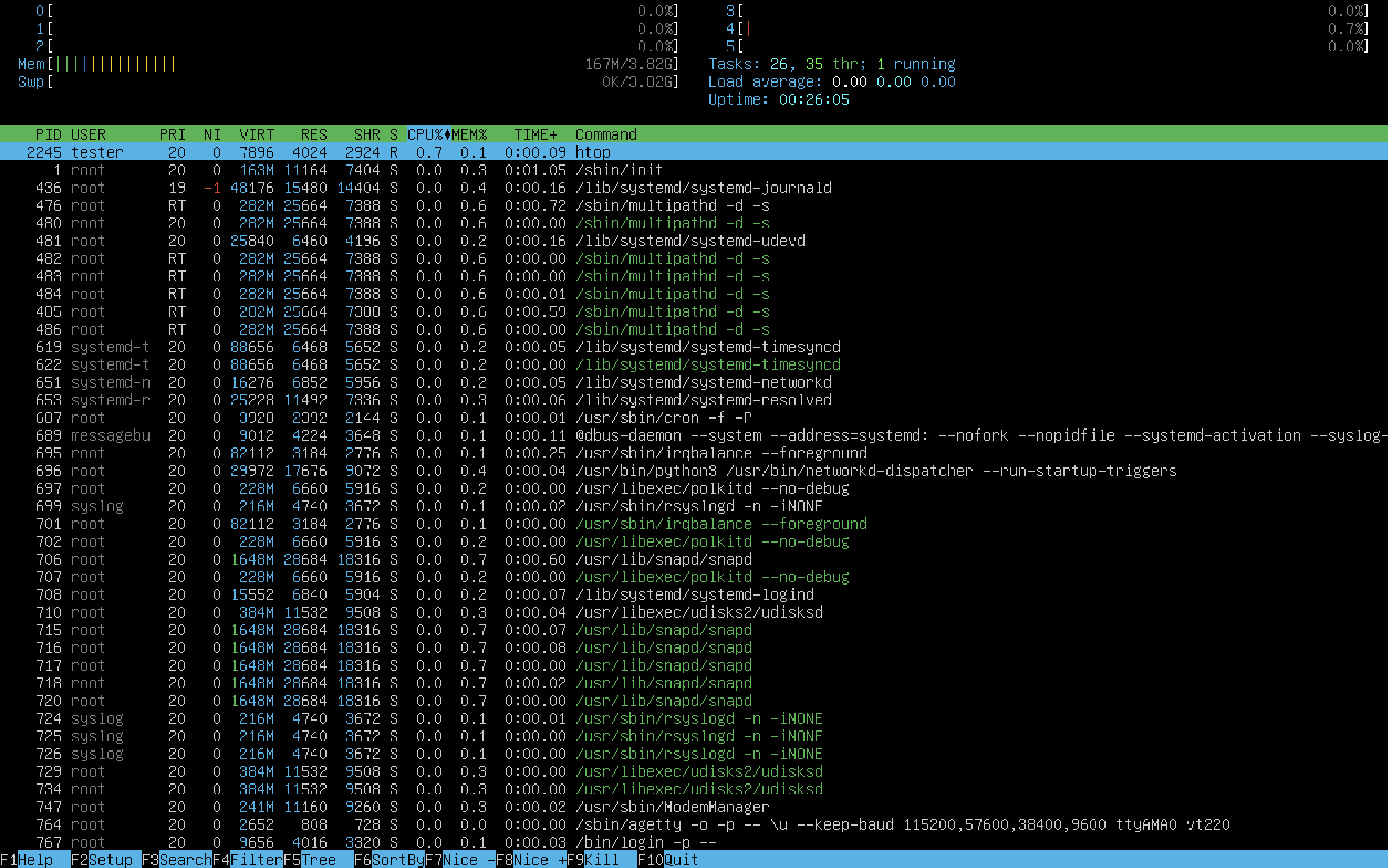 우리가 윈도우에서 흔히 사용하던 작업관리자처럼 우분투에서도 해당 기능을 하는 htop이라는게 존재한다. 해당 패키지를 설치해서 프로세스 관리에 도움을 받는게 좋다. 아래 명령어를 사용해서 설치한다.