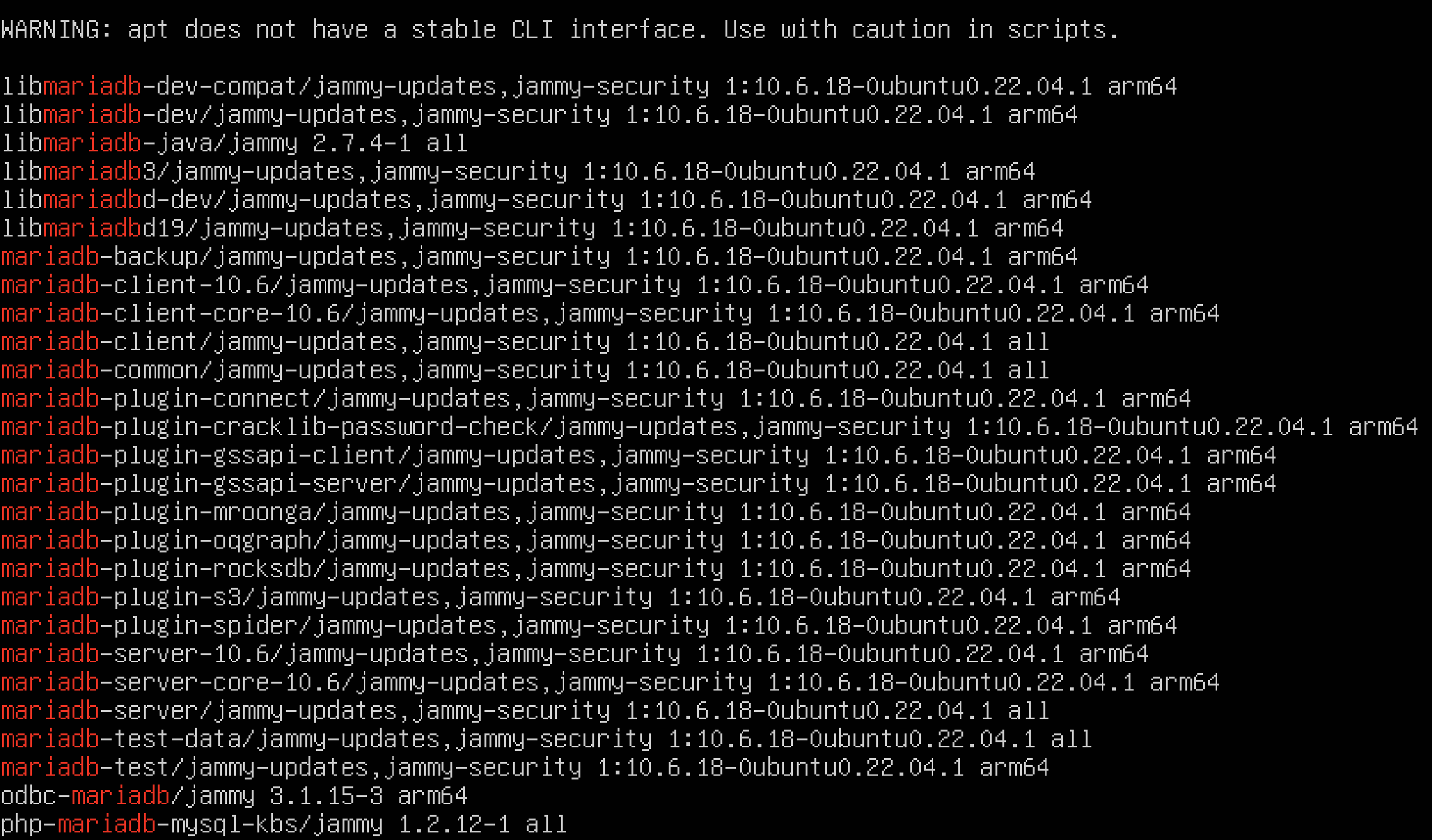 만약 설치하려는 mariadb 버전이 없을 경우 공식 홈페이지에서 따로 다운받아 apt를 업데이트 한다. 보통은 해당 우분투 버전에서 사용 가능한 버전이 설치된다. server는 해당 리눅스에 DB 역할을 하는 서버가 설치되며, client는 해당 서버에 접속하기 위해 사용되는 패키지다.