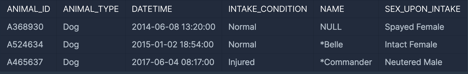 SELECT ANIMAL_ID