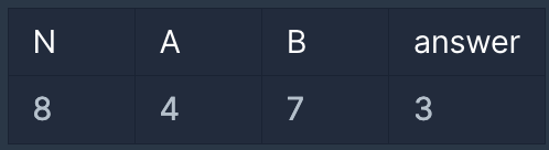 - A, B : N 이하인 자연수 (단, A ≠ B 입니다.)