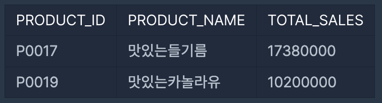 5월 식품들의 총 매출 조회하기 본문