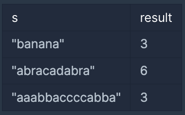 s="abracadabra"인 경우 ab - ra - ca - da - br - a와 같이 분해됩니다.